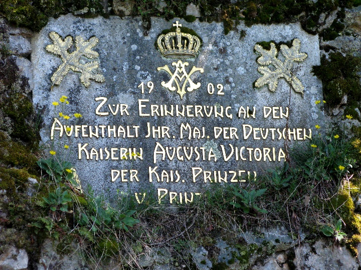 Gedenktafel anlässlich des hohen Besuchs anno 1902 am Alte-Mann-Fels